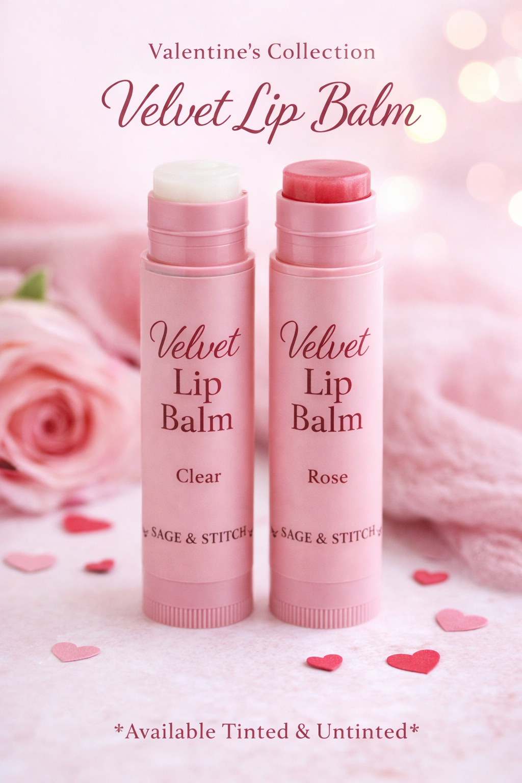 ✨ Velvet Lip Balm — a nourishing everyday balm available in clear and four tinted options